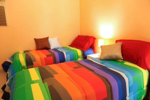 Le colorazioni delle pareti e i tendaggi coordinati creano un’atmosfera di serenità e benessere.